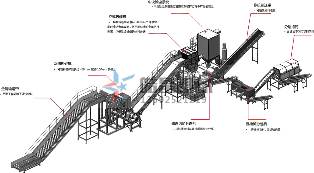 鋁型材破碎機(jī)(斷橋鋁破碎機(jī))通過(guò)與鋁型材破碎機(jī)、磁選設(shè)備等組成一套完整的鋁型材破碎機(jī)(斷橋鋁破碎機(jī))設(shè)備破碎生產(chǎn)線,磁選設(shè)備在工作時(shí)會(huì)在磁輥表面產(chǎn)強(qiáng)磁場(chǎng),當(dāng)金屬材料進(jìn)入磁場(chǎng)分時(shí),磁選機(jī)感應(yīng)出電流,同時(shí)本身產(chǎn)生磁場(chǎng),金屬由于相互作用被分離出,通過(guò)鋁型材破碎機(jī)(斷橋鋁破碎機(jī))生產(chǎn)線的加工,可有效將廢鋁材料、廢鐵材料分離開(kāi)來(lái)。