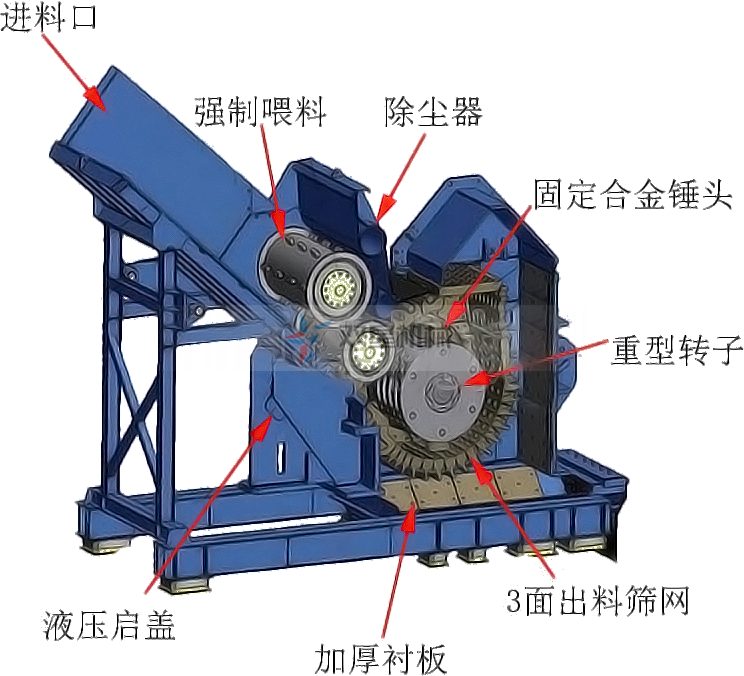 1.金屬破碎機加工斷橋鋁工作原理: